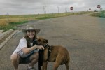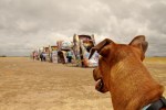 Heading west on I-40 we stopped just outside of town to tour the Cadillac Ranch. Seriously this was pretty cool but Lucy absolutely did not want to get out of truck. She kept running to the opposite side of truck. There were about 50 people in the field coming and going. In the end, I got her out of the truck but she fought me the whole way. I got a great shot of her in front of the cars. Apparently you can bring spray paint cans and write stuff on the cars.