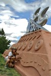 Once across the New Mexico border (about an hour) we picked up the midway point of legendary Route 66 in Tucumcari, NM. Road originally began in Chicago and extended all the way to Los Angeles. There is an obvious effort to restore vitality to this legendary road while still retaining the classic look of it’s heyday. Wrapping up our photo op at the Route 66 monument, we got back on the interstate with no more stops until Albuquerque. Remainder of drive was easy until we reached town and the setting sun – very hard to drive with setting sun blazing directly in your eye. Albuquerque was more mountainous on the entry side (eastern) than I had anticipated, but the city was very easy to navigate thru to our hotel on the north part of city. Nativo Lodge was a step up from the La Quinta Inns of the previous 2 nights and I got a wonderful deal on expedia.com by paying in advance. Hotel staff were extremely friendly and the hotel was decorated in the local tradition of Indian culture.