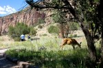 Ahh… today is my day alone and leaving Lucy for the first time in a hotel. To ease my guilt, I decided to take Lucy to play at a local off leash dog park close by. Difference between Santa Fe parks and Houston parks is there is no grass in the Santa Fe parks… a bit disconcerting for lil Lucy at first but we met some very nice pups and she ran around for a bit.