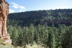 Now to the fun part…. To get to Bandelier you have to drive up the mountain then down into the basin but you are still between 5600 and 8000 feet above sea level depending on where you are in the park. The scenery along the way is stunning as is the park itself. Beautiful day but my allergies were horrible due to all the evergreen trees everywhere, but I took meds and headed on. No formal group tour so everyone did the main 1 mile hike on their own thru the open field area (past several archaeological digs)