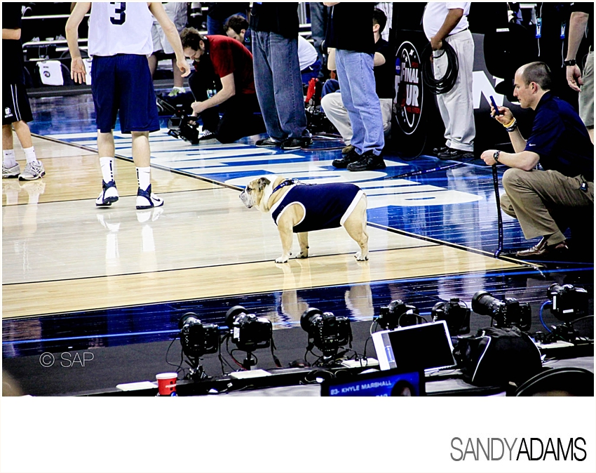 Reliant Stadium, home of the Houston Texans, is located on the edge of downtown Houston inside the loop. To me it was too big of an arena to hold a basketball game, but it sure does hold the people. The practice sessions for the Final Four teams were open and free to the public. I watched while the Butler Bulldogs ran through their practice drills. Those Indiana boys even brought their mascot, who could be seen trotting about with the tv reporters on his tail trying to get an interview. Seriously!!